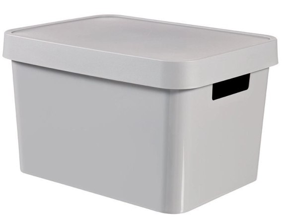 Pojemniki organizer z przykrywką, w kolorze szarym. Pojemność 17l.