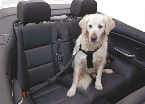 Regulowany pas bezpieczeństwa do jazdy samochodem dla psa, o długości 50-70cm. Rozmiar M.