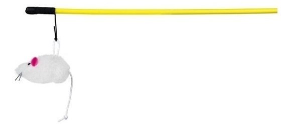 Zabawka dla kota, mysz w futerku na wędce. Kolor szary.